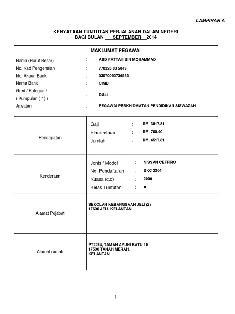 Contoh Borang Tuntutan Perjalanan Mariodsxz